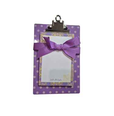 The Sorority Mini Clip Board measures 6" x 9" and comes with mini notebook as shown. Notebook measures 4.25" x 6.5"