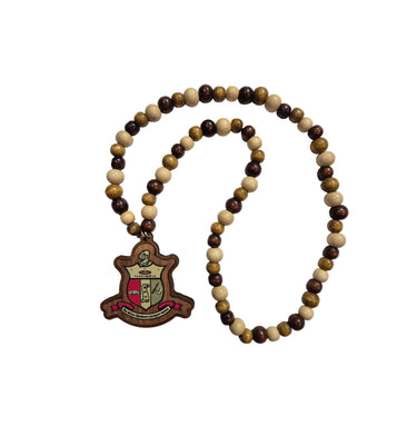 Represent Kappa Alpha Psi with timeless style and tradition. This handcrafted Kappa beaded necklace features natural wood beads in classic red and gold and a detailed Kappa Alpha Psi fraternity crest medallion for a bold and distinguished look.