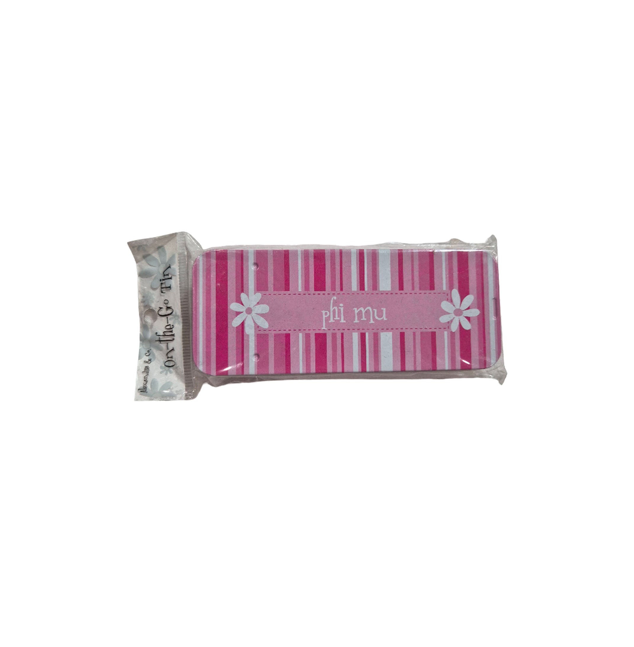 Celebrate your sorority spirit while staying organized with our Phi Mu Personal Tin. This compact tin is the perfect blend of practicality and sisterhood pride, ideal for carrying or storing small personal items.