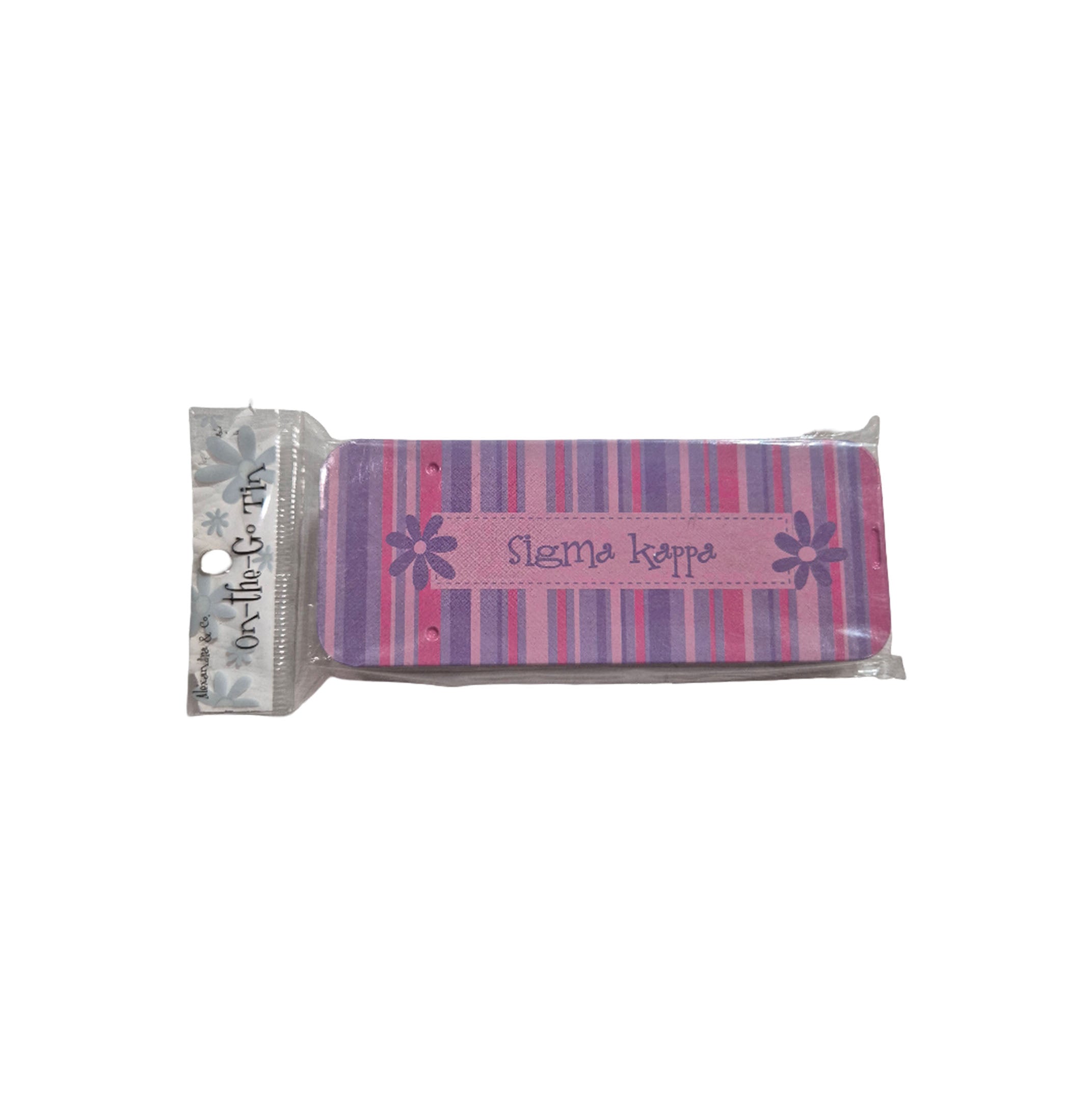 Celebrate your sorority spirit while staying organized with our Sigma Kappa Personal Tin. This compact tin is the perfect blend of practicality and sisterhood pride, ideal for carrying or storing small personal items.