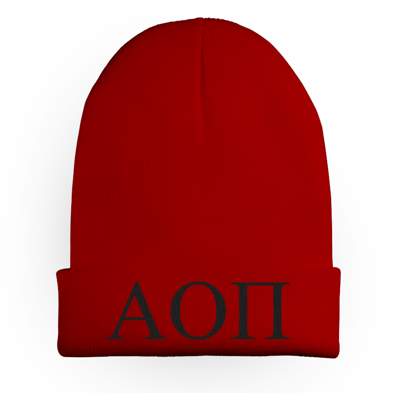 \nStay warm with your 1-color embroidered beanie to match your shirt today! Comes in 19 colors. Each cap comes with your Greek symbols embroidered on the front in one color of your choice. You choose the color of the hat and the letter color. One size fits all, hypoallergenic, hand washable.\nNOTE: To enable the customization features, click the build your own button below.