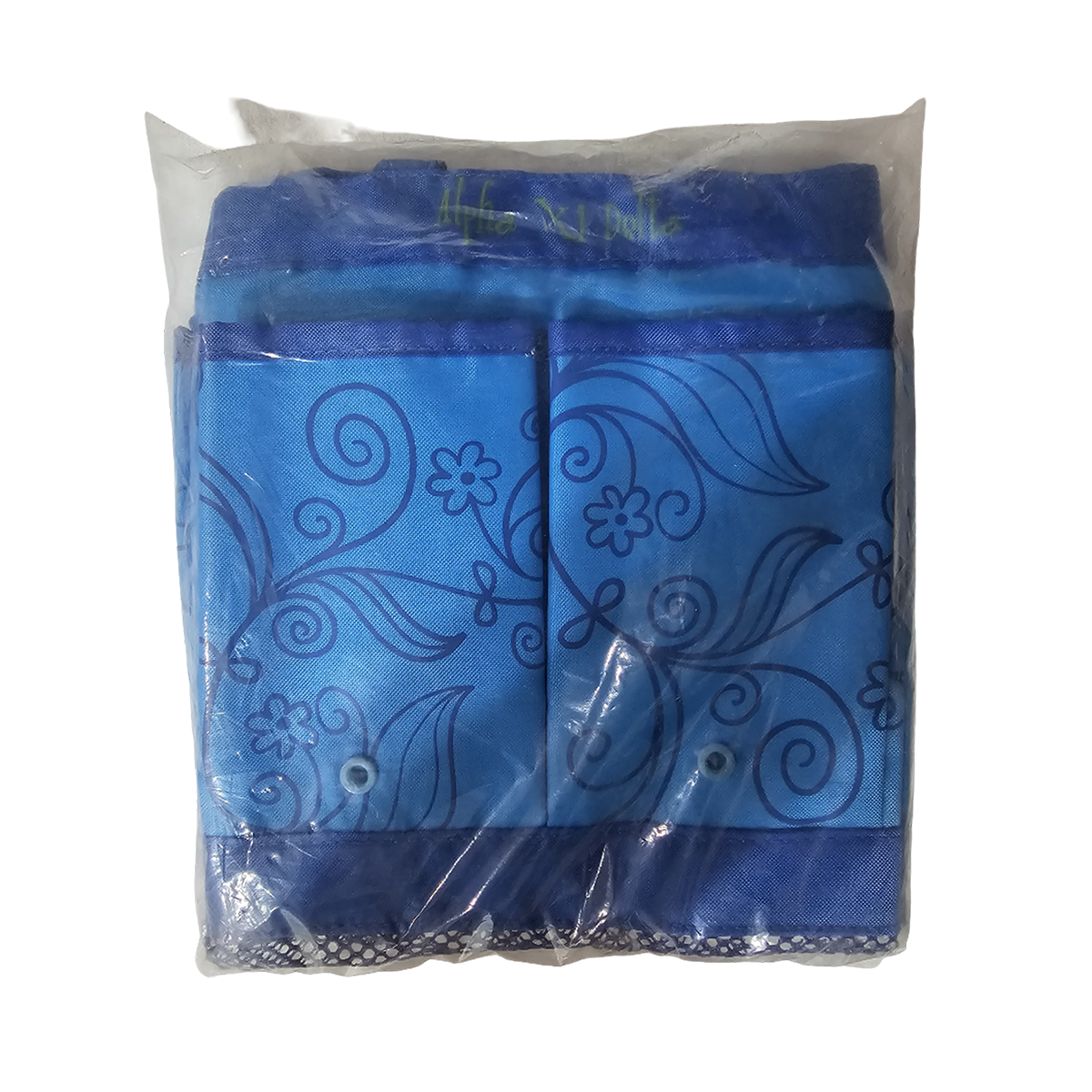 Keep your essentials organized with the Alpha Xi Delta light blue shower caddy featuring a stylish dark blue flower design. Perfect for dorms, apartments, and sorority house living.