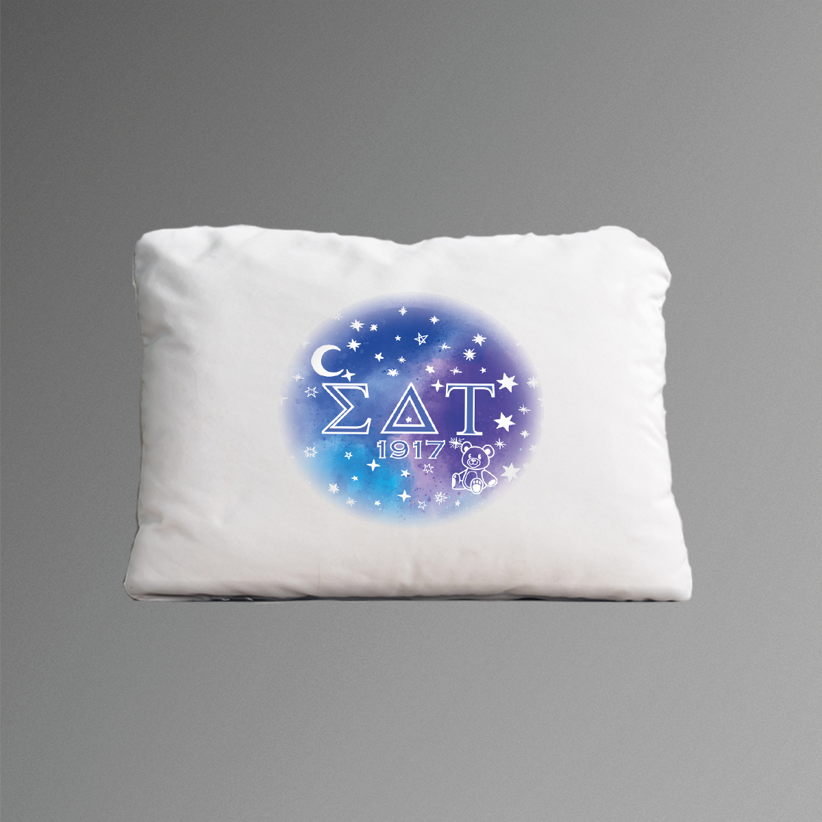 This beautiful Sigma Delta Tau Pillowcase, designed for every ΣΔΤ member who loves cute sorority decor. This pillowcase features a magical starry-night gradient design with the ΣΔΤ Greek letters and the founding year 1917, making it the perfect addition to any dorm room, apartment, or sorority house.