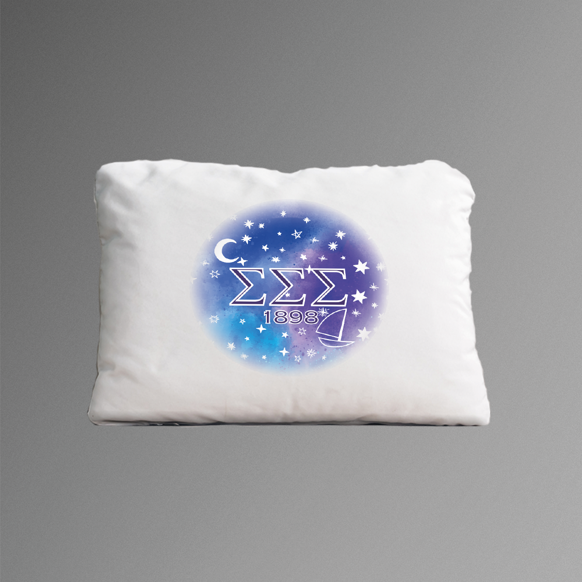 This beautiful Sigma Sigma Sigma Pillowcase, designed for every Trisigma member who loves cute sorority decor. This pillowcase features a magical starry-night gradient design with the ΣΣΣ Greek letters and the founding year 1898, making it the perfect addition to any dorm room, apartment, or sorority house.