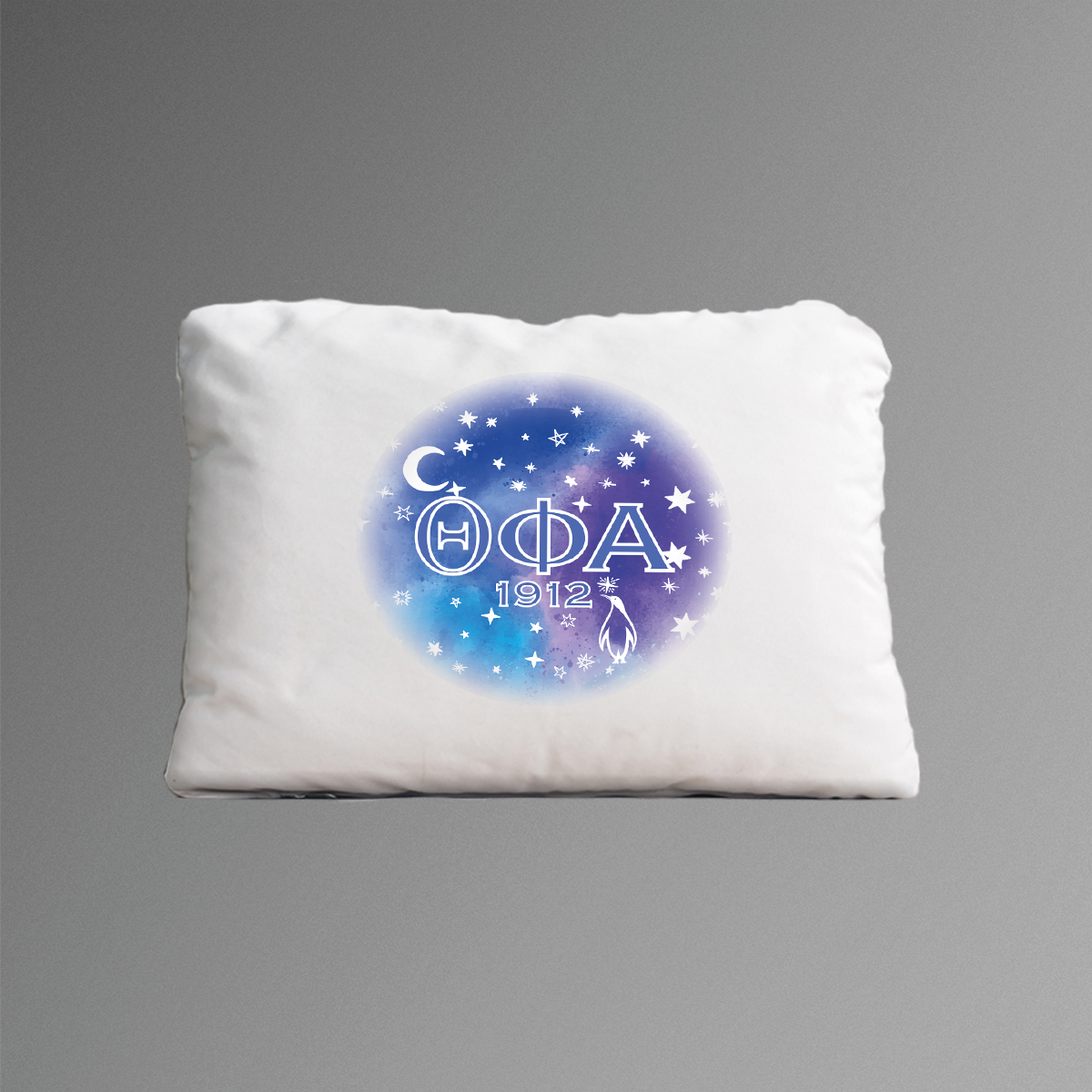 This beautiful Theta Phi Alpha Pillowcase, designed for every Theta Phi member who loves cute sorority decor. This pillowcase features a magical starry-night gradient design with the ΘΦA Greek letters and the founding year 1912, making it the perfect addition to any dorm room, apartment, or sorority house.