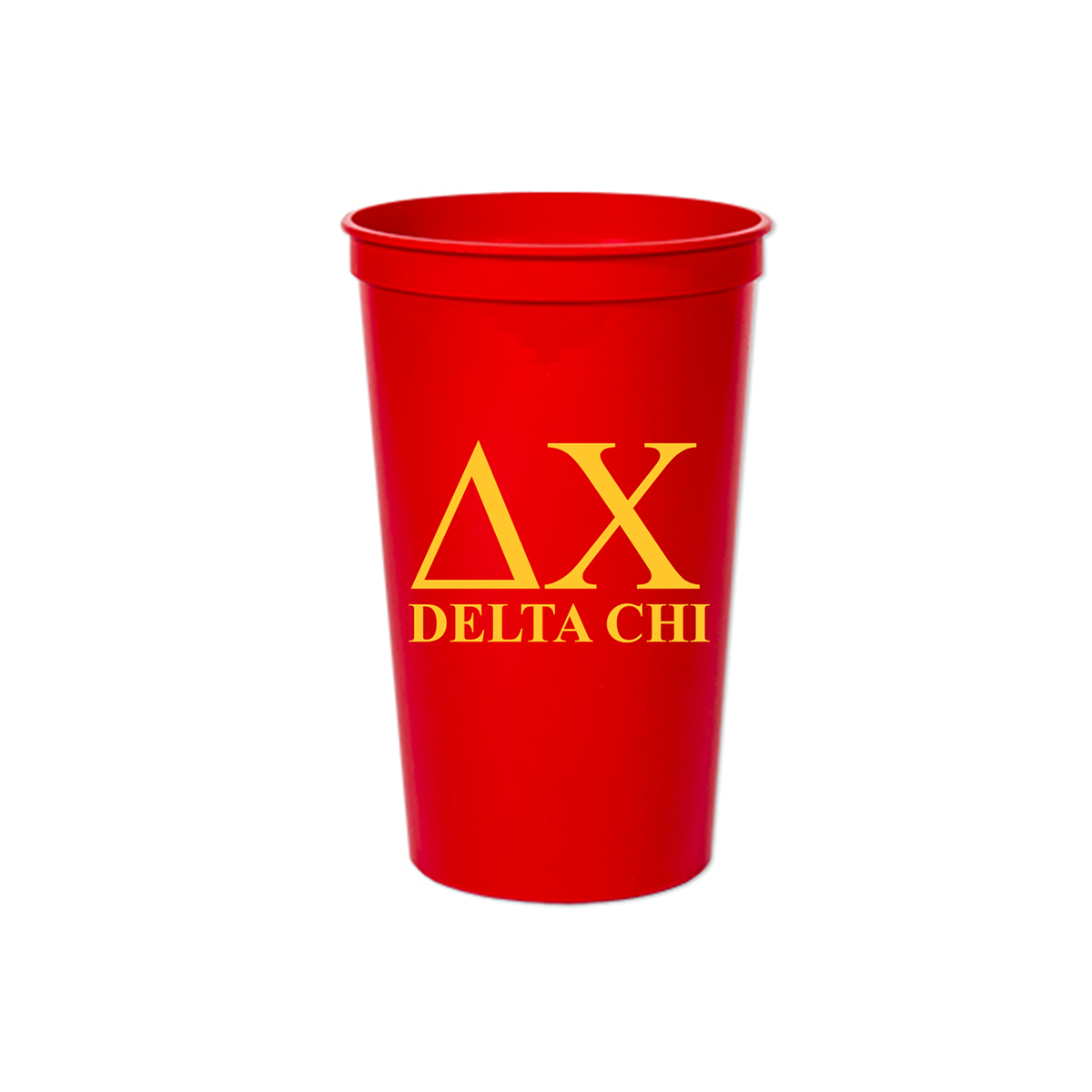 Represent Delta Chi in style with this ΔΧ red reusable stadium cup, designed with bold gold Greek letters and clean typography. Perfect for fraternity houses, chapter events, mixers, tailgates, brotherhood retreats, and everyday use.