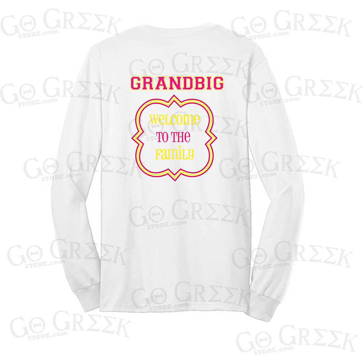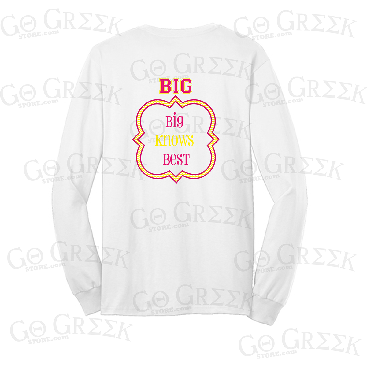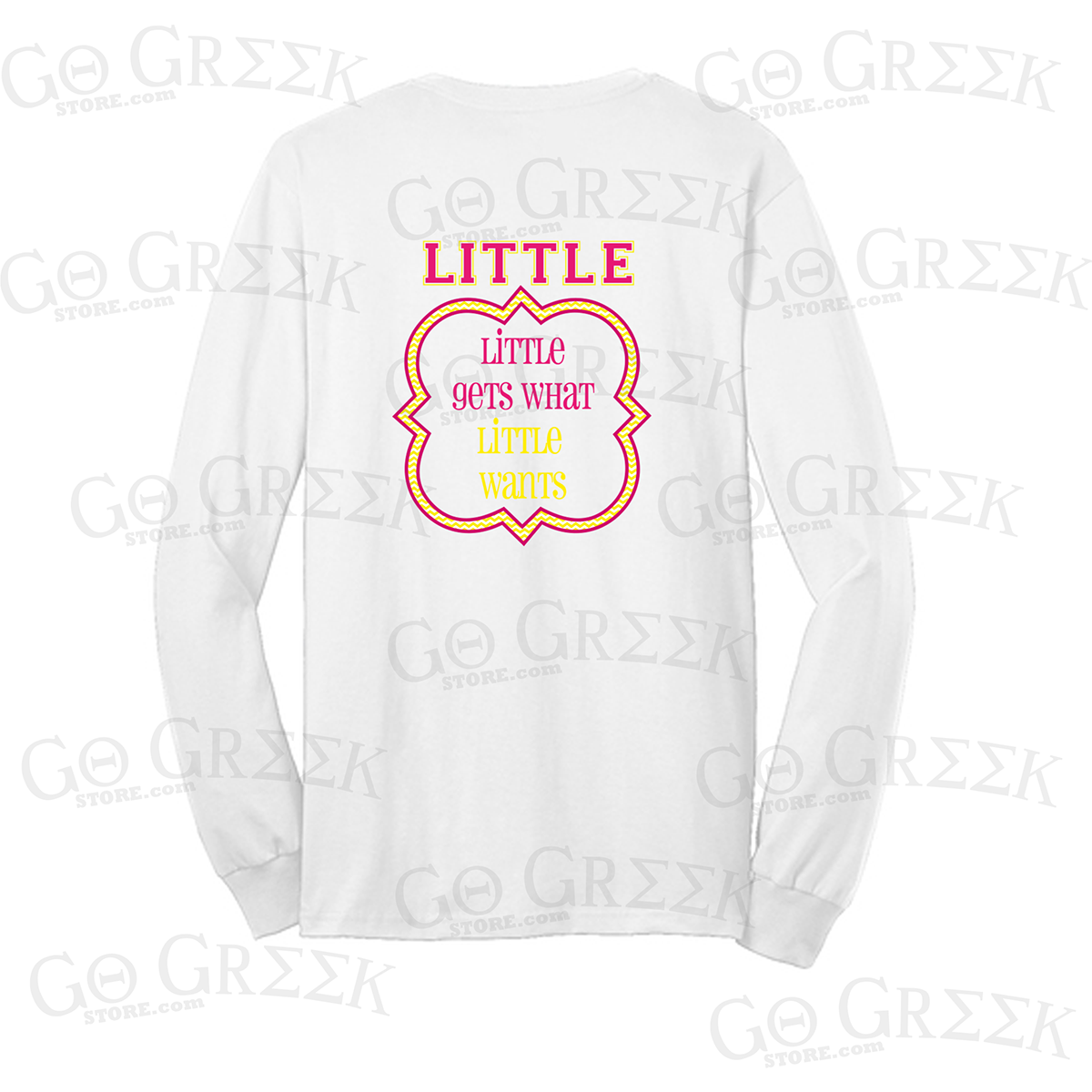 Custom designed Phi Mu Big & Little long sleeve pocket tee colorful quatrefoil