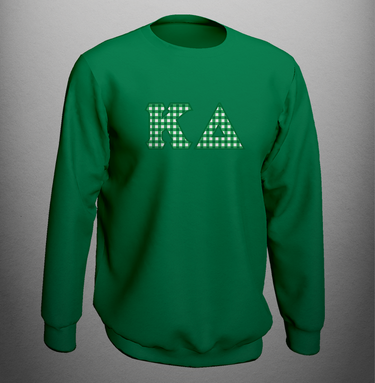 how off your Kappa Delta pride with this stylish irish green crewneck sweatshirt, featuring bold gingham Greek letters. Perfect for any sorority event or casual wear.