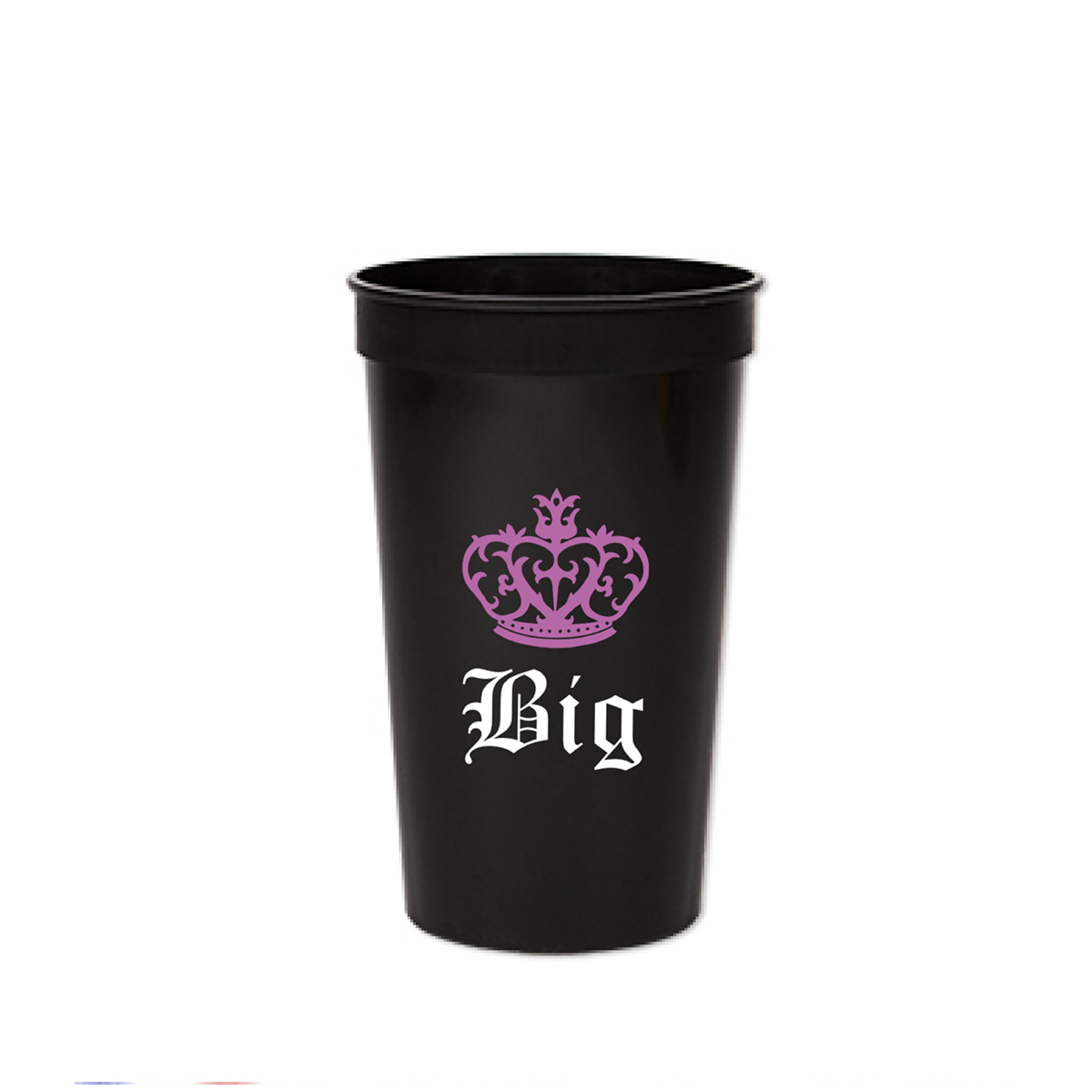 Elevate your Big/Little reveal with this stunning Black Big Crown Cup, designed with a royal purple crown and bold “Big” lettering in a classic Old English font. This stylish and durable reusable cup is the perfect addition to any sorority Big/Little basket, chapter event setup, or Greek-life gift bundle.