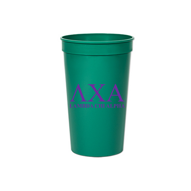 Represent Lambda Chi Alpha in style with this LXA green reusable stadium cup, designed with bold purple Greek letters and clean typography. Perfect for fraternity houses, chapter events, mixers, tailgates, brotherhood retreats, and everyday use.