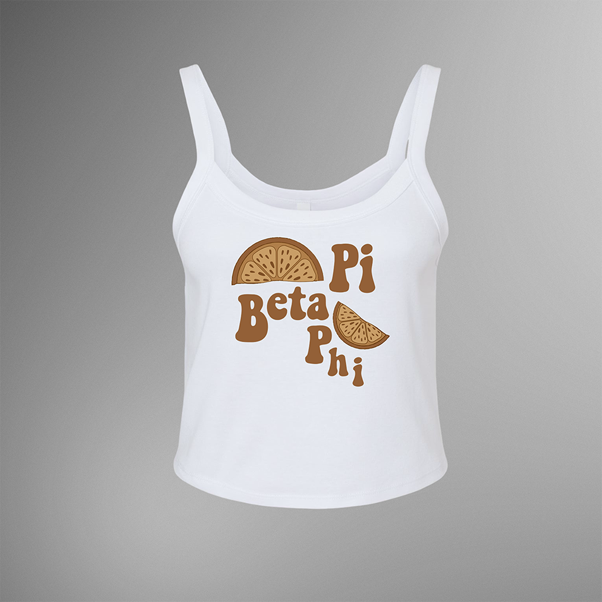 Bring a burst of sunshine to your wardrobe with this Pi Beta Phi Retro Orange Slice Tank Top. Designed with a groovy, vintage-style font and bright orange graphics, this sorority tank is perfect for recruitment events, summer socials, or casual campus days.