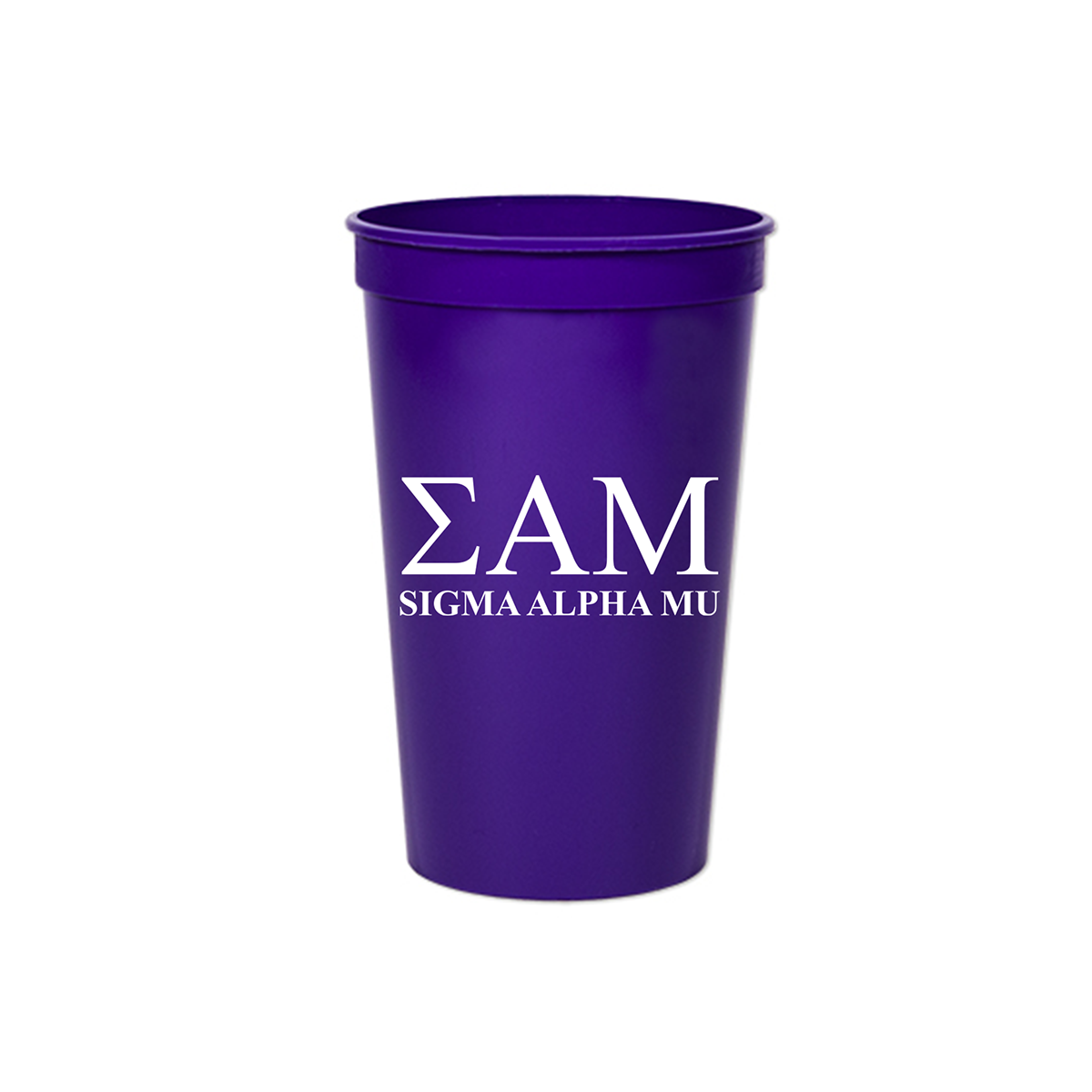 Represent Sigma Alpha Mu in style with this ΣΑM purple reusable stadium cup, designed with bold white Greek letters and clean typography. Perfect for fraternity houses, chapter events, mixers, tailgates, brotherhood retreats, and everyday use.
