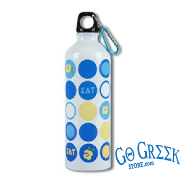 It is composed of stainless steel with a convenient carabiner on the lid for easy attachment to bags, etc. Holds 24 oz of your favorite beverage!