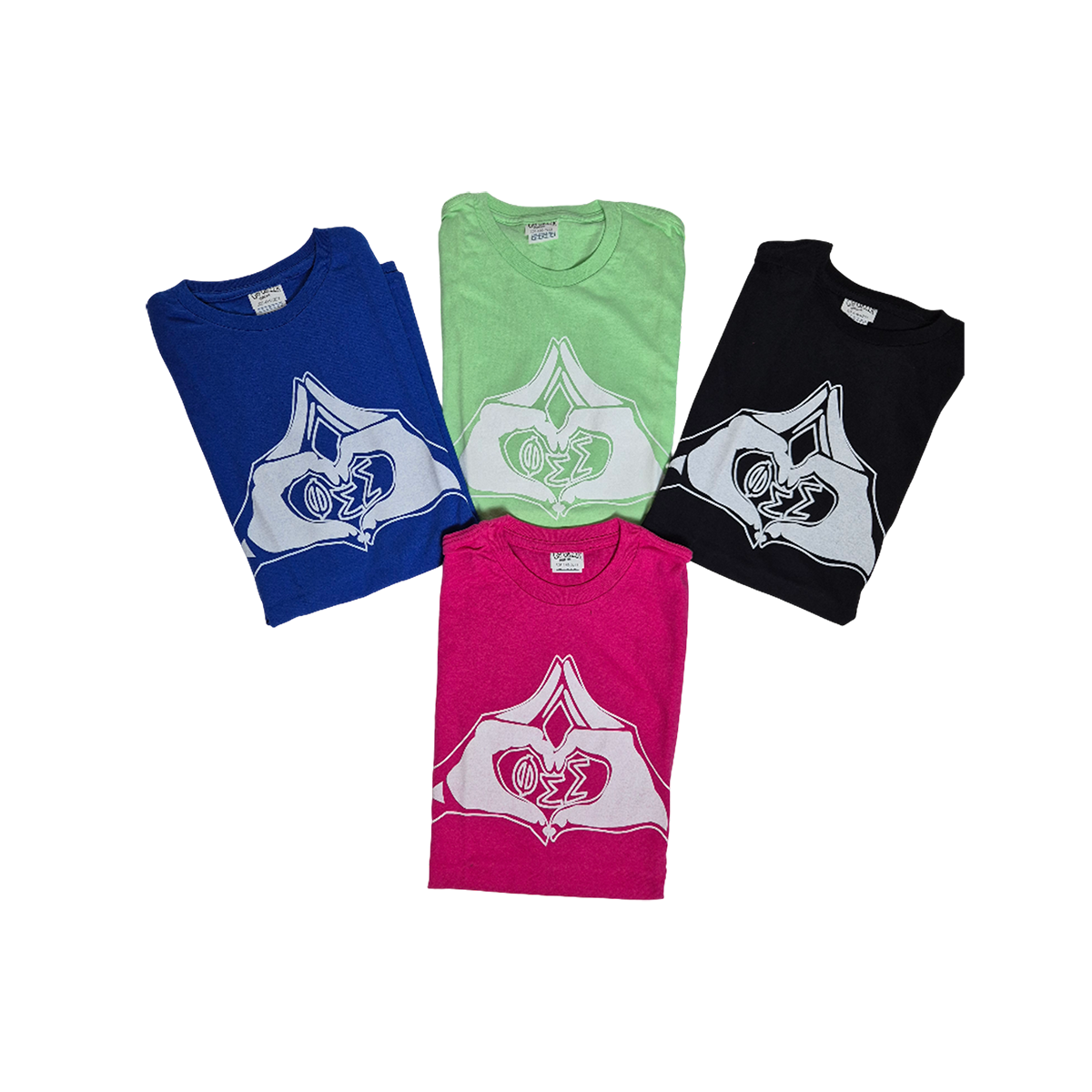 Celebrate your sisterhood and stand out on campus with the Phi Sigma Sigma Hand Sign Sorority T-Shirt. This bold design features the iconic hand sign graphic and Greek letters, making it an instant favorite for events, photos, and everyday wear.