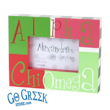 Alpha Chi Omega?photo frame holds a 4x6 photo. Very cute! A great gift for you? or any one of your sisters!