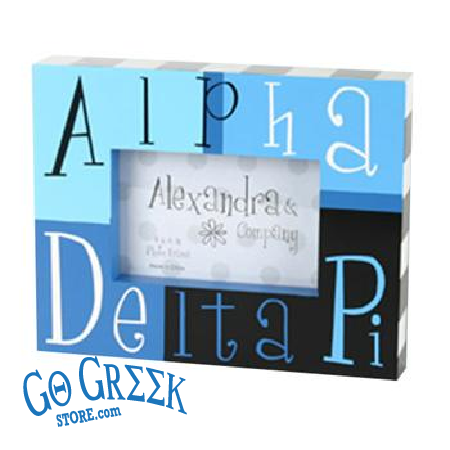 Alpha Delta Pi photo frame holds a 4x6 photo. Very cute! A great gift for you or any one of your sisters!