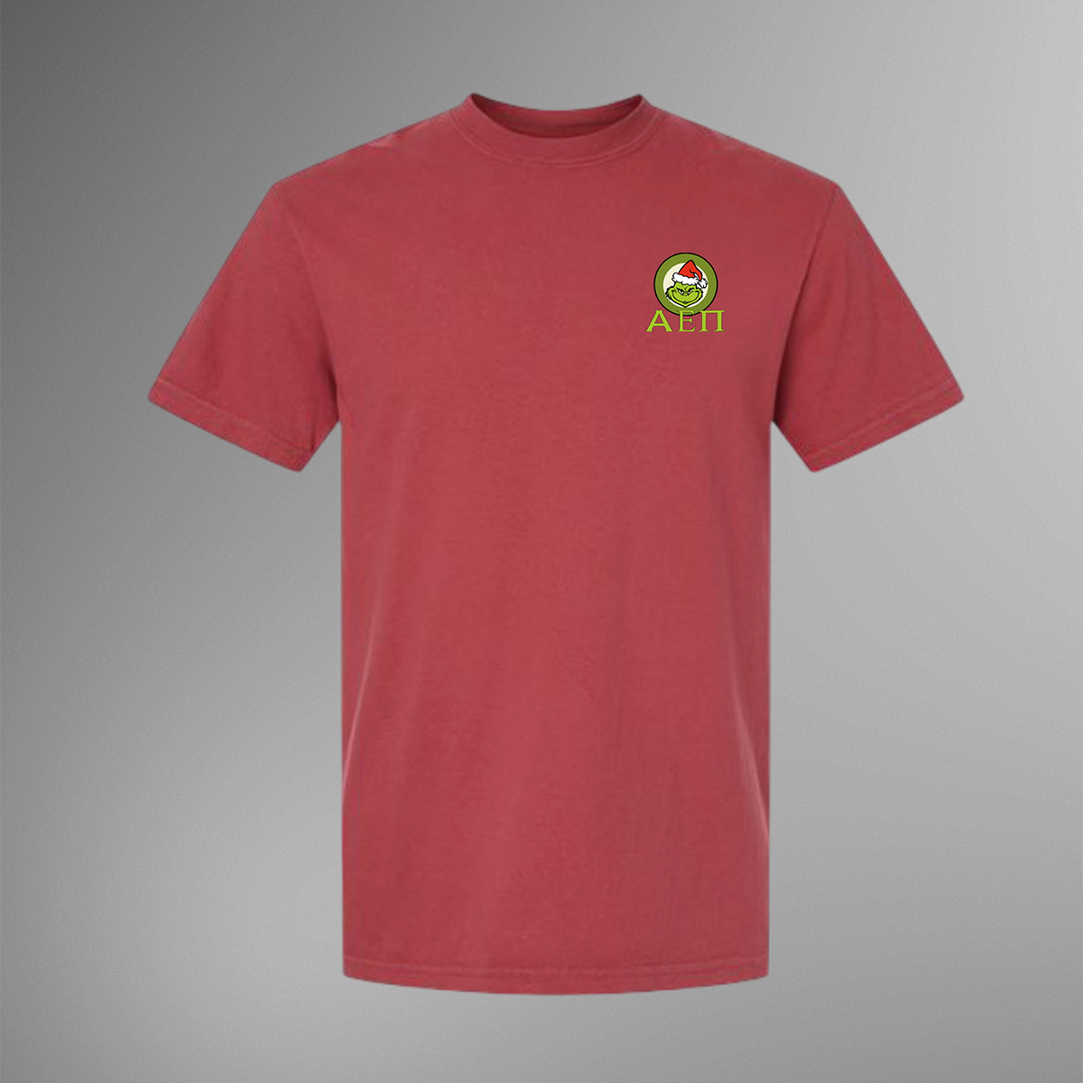 Get into the holiday spirit with fraternity style in this Alpha Epsilon Pi Christmas T-shirt featuring a bold Grinch-inspired design and classic Greek letters. Made from soft, breathable fabric with a comfortable unisex fit, this tee is perfect for holiday parties, fraternity events, campus life, and casual winter wear.