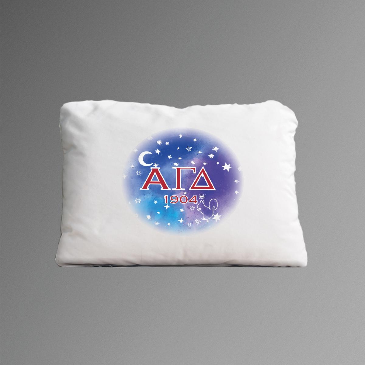 This beautiful Alpha Gamma Delta Pillowcase, designed for every ΑΓΔ member who loves cute sorority decor. This pillowcase features a magical starry-night gradient design with the ΑΓΔ Greek letters and the founding year 1904, making it the perfect addition to any dorm room, apartment, or sorority house.