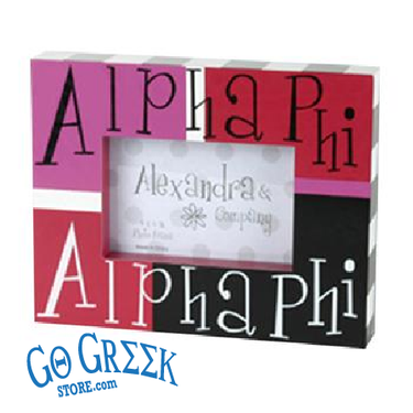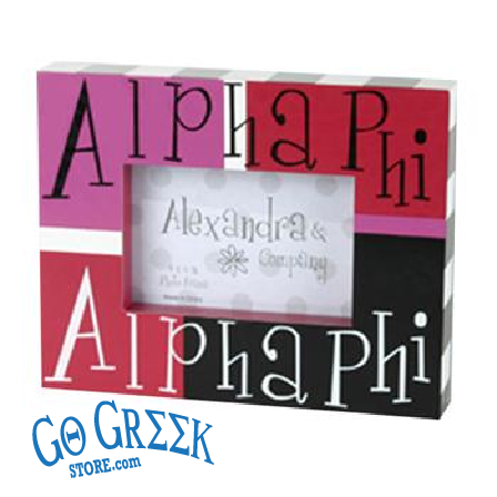 Alpha Phi photo frame holds a 4x6 photo. Very cute! A great gift for you or any one of your sisters!