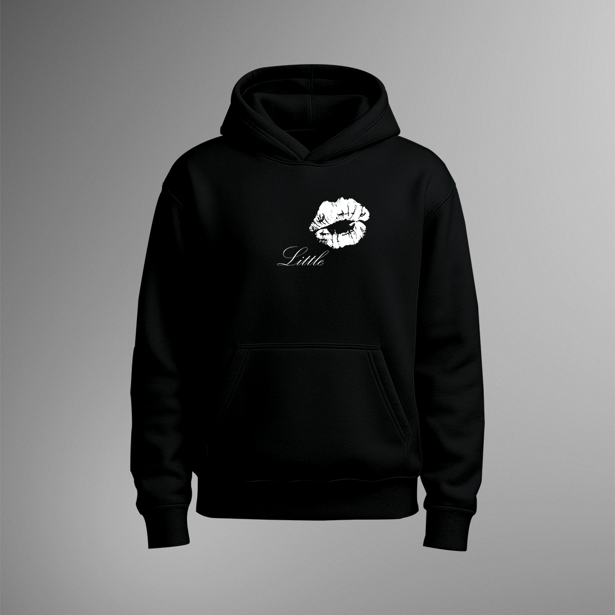 Get cozy in style with our Big & Little Kiss Print Hoodies, the perfect match for every sorority duo. These black fleece hoodies feature a trendy white kiss print design paired with elegant script lettering “Big” and “Little”