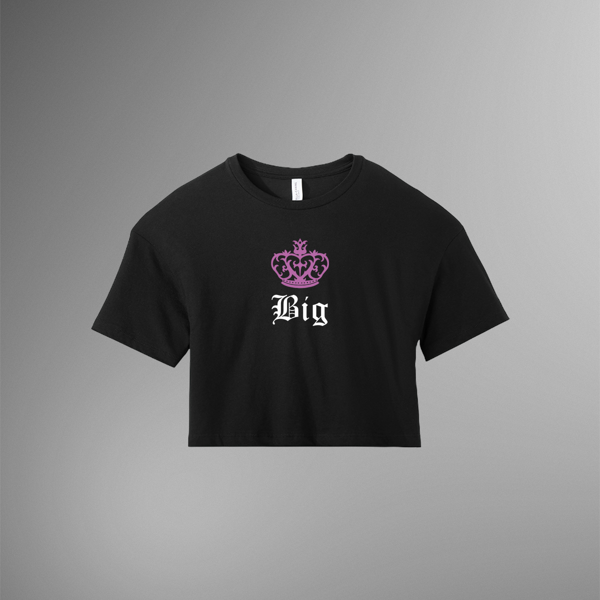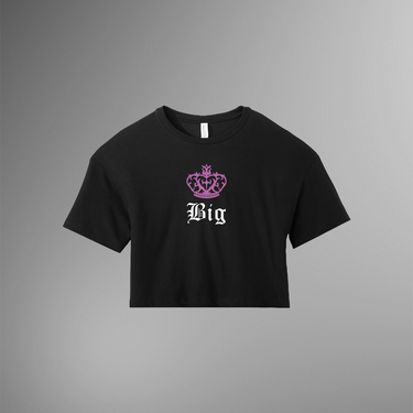 Celebrate the magic of sisterhood with our Black Sorority Big/Little Crop Tee, this stylish cropped tee features a purple crown graphic above Gothic-style “Big” or “Little” lettering