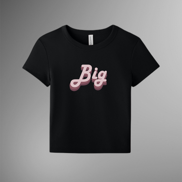 Celebrate your Big/Little bond with these trendy black baby tee featuring a retro pink “Big” and “Little” design.