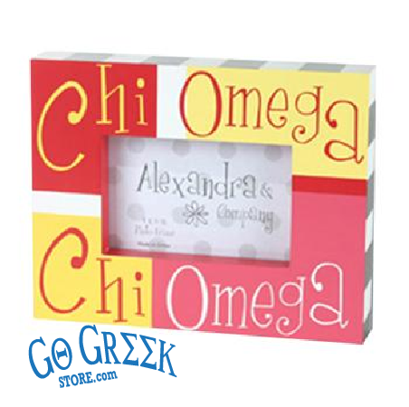 Chi Omega photo frame holds a 4x6 photo. Very cute! A great gift for you or any one of your sisters!