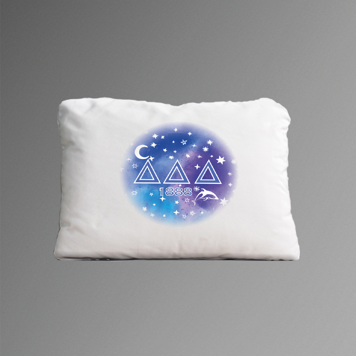 This beautiful Delta Delta Delta Pillowcase, designed for every Tridelta member who loves cute sorority decor. This pillowcase features a magical starry-night gradient design with the ΔΔΔ Greek letters and the founding year 1888, making it the perfect addition to any dorm room, apartment, or sorority house.