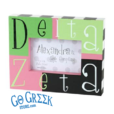 Delta Zeta photo frame holds a 4x6 photo. Very cute! A great gift for you or any one of your sisters!