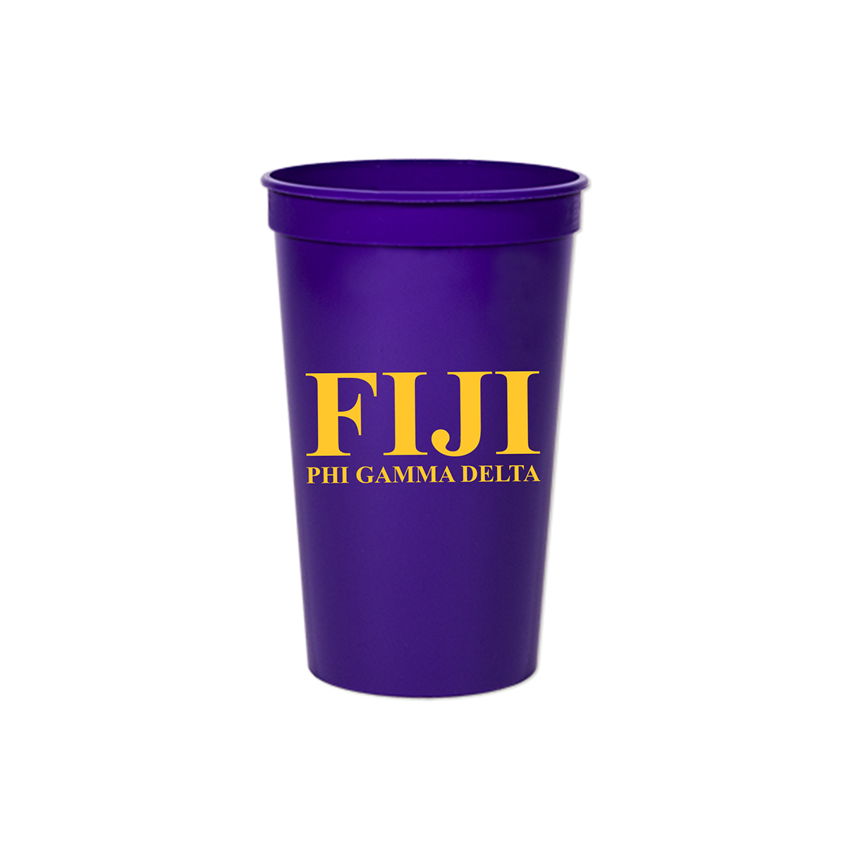 Represent Phi Gamma Delta in style with this FIJI purple reusable stadium cup, designed with bold gold Greek letters and clean typography. Perfect for fraternity houses, chapter events, mixers, tailgates, brotherhood retreats, and everyday use.