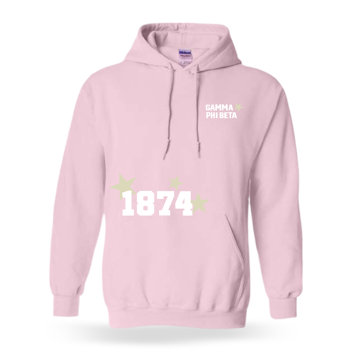 Stay cozy while repping your sisterhood with this Gamma Phi Beta sorority printed hoodie, featuring a bold “1874” founding year design with stars and a left-chest Gamma Phi Beta text. Designed in a classic pullover fit, this hoodie is perfect for everyday campus wear and all your favorite Greek life events.