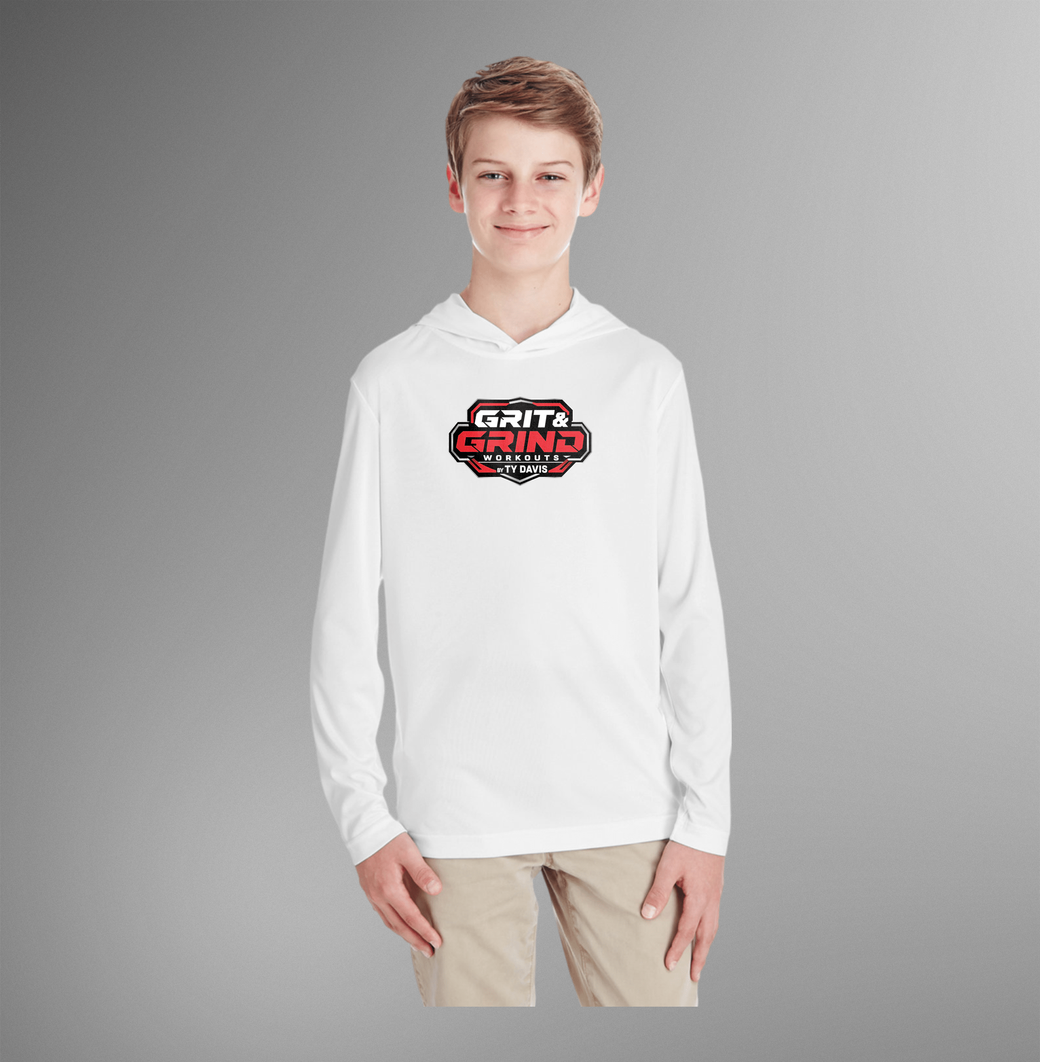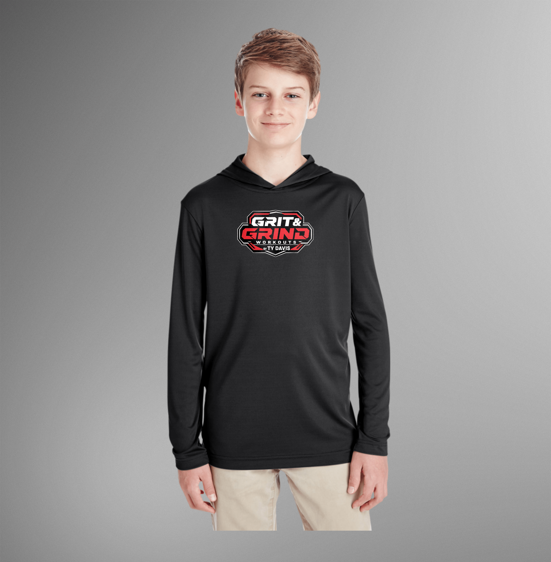 Grit & Grind Youth Dri-Fit Long Sleeve Hooded Shirt it’s about the heart