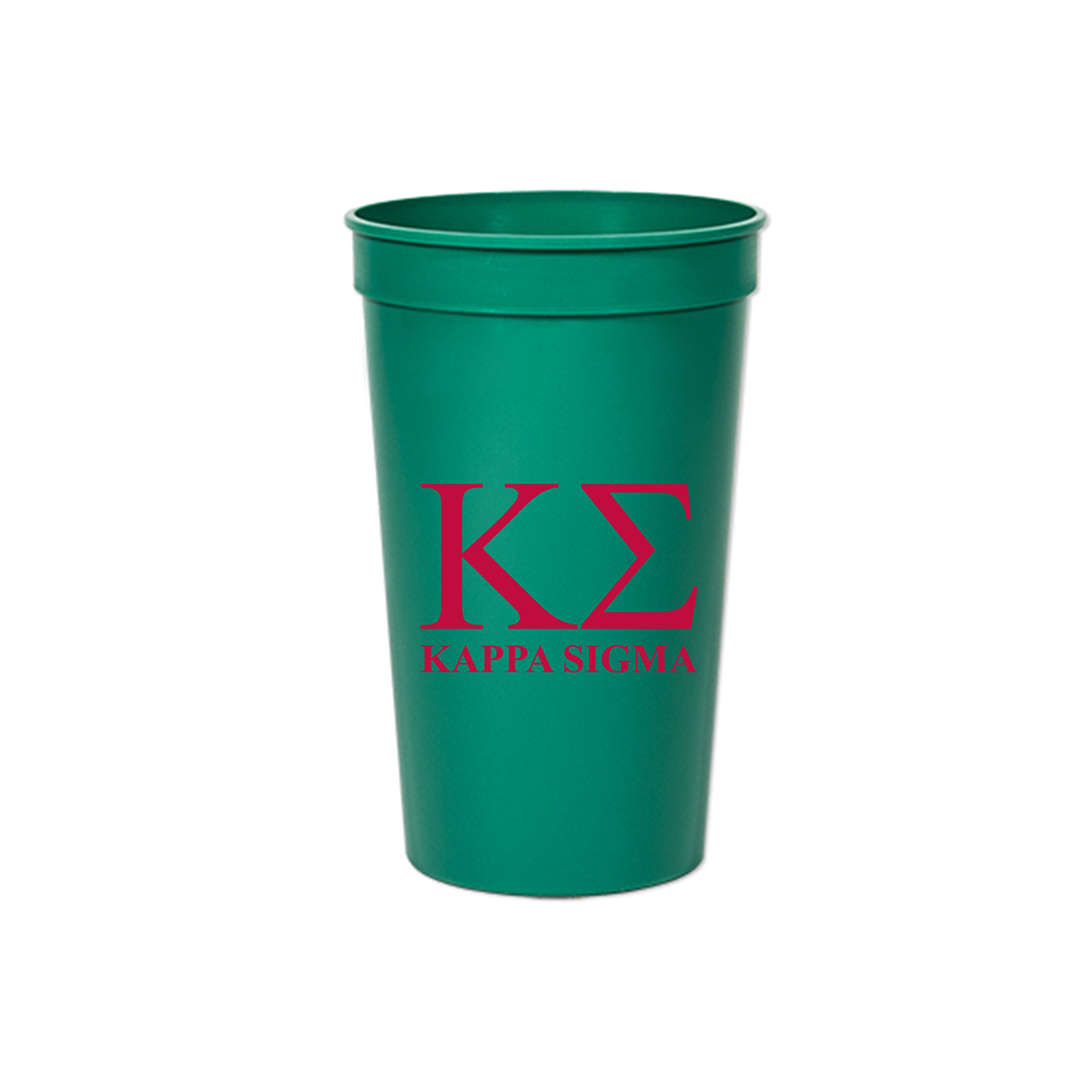 Represent Kappa Sigma in style with this KΣ green reusable stadium cup, designed with bold red Greek letters and clean typography. Perfect for fraternity houses, chapter events, mixers, tailgates, brotherhood retreats, and everyday use.