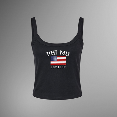 The cropped tank silhouette offers a flattering, modern fit while keeping comfort front and center. Whether you’re celebrating national holidays, heading to a sisterhood event, or looking for a stylish Big/Little gift, this Phi Mu tank delivers effortless Greek pride.