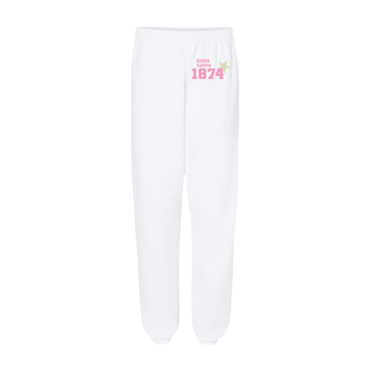 Featuring a clean white base with a soft pink Sigma Kappa, founders year print and subtle gold star detail, these sorority joggers combine comfort, tradition, and modern Greek fashion. Perfect for class, chapter meetings, recruitment week, travel days, or cozy campus nights.