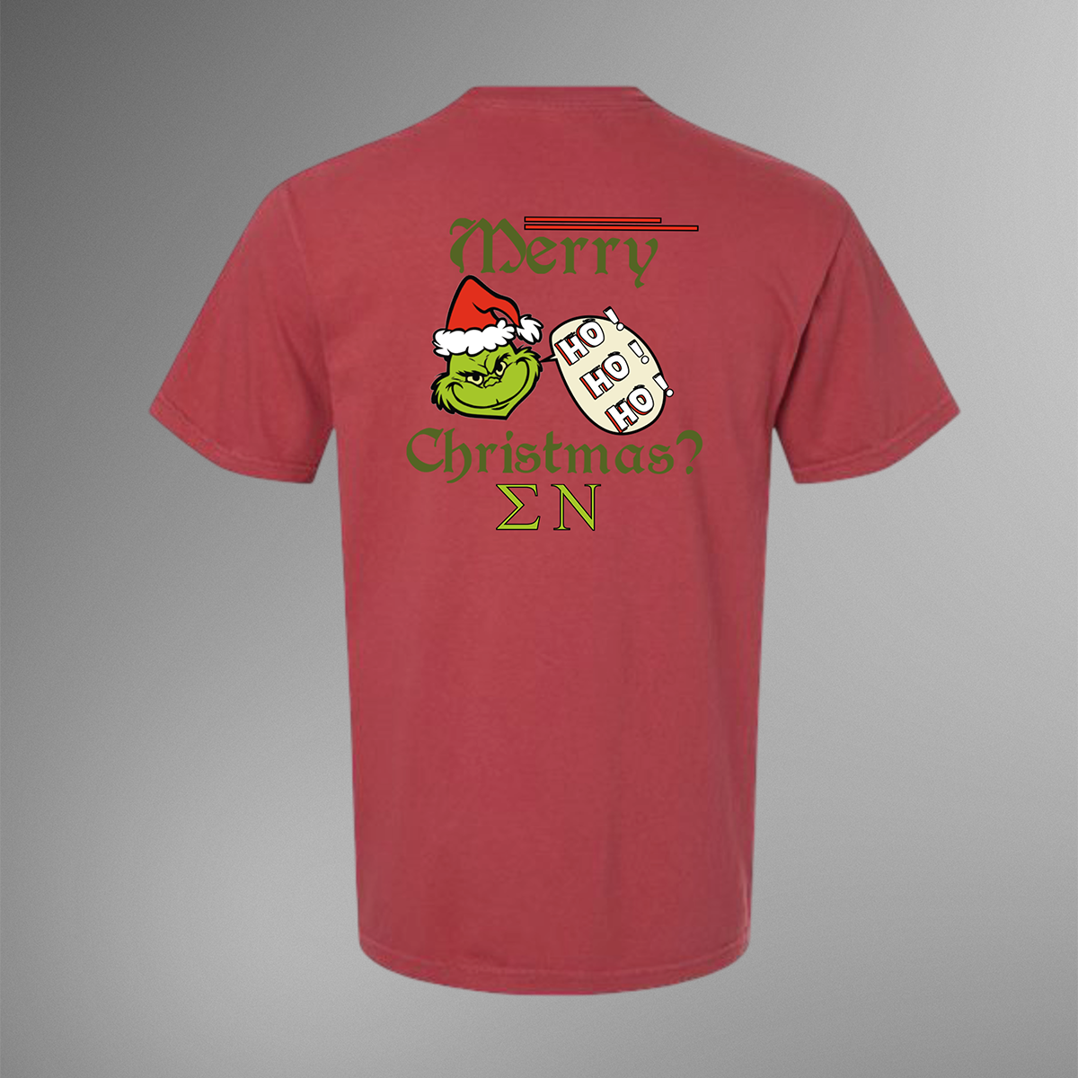 Get into the holiday spirit with fraternity style in this Sigma Nu Christmas T-shirt featuring a bold Grinch-inspired design and classic Greek letters. Made from soft, breathable fabric with a comfortable unisex fit, this tee is perfect for holiday parties, fraternity events, campus life, and casual winter wear.