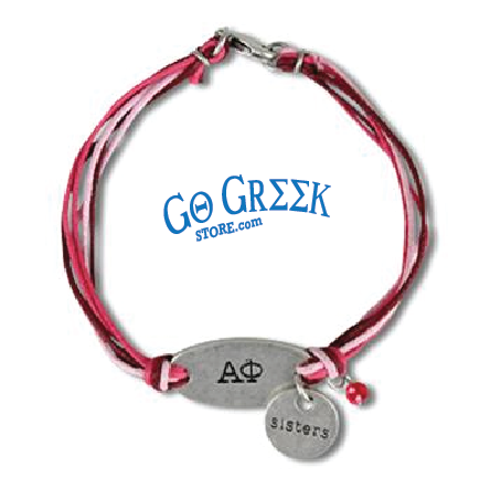 Our Alpha Phi Sister Bracelet is a Double-Charmed bracelet with Coordinating pearlescent beads. One size fits most.