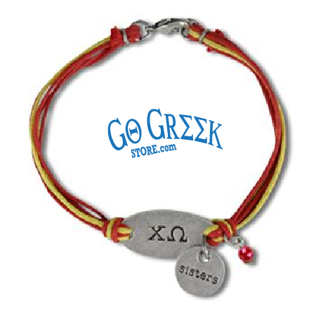 Our Chi Omega Sister Bracelet is a Double-Charmed bracelet with Coordinating pearlescent beads. One size fits most.